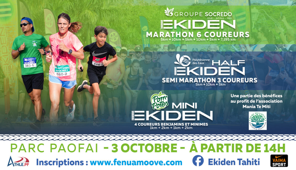 La troisième édition du GROUPE SOCREDO EKIDEN et du POLYNESIENNE DES EAUX HALF EKIDEN ainsi que la 2ème édition du POM’POTES MINI EKIDEN se dérouleront le samedi 3 octobre 2026